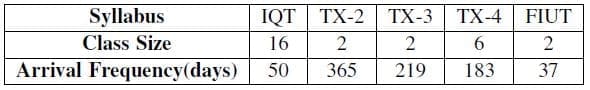 Entities represent a crew, comprised of a student pilot and student sensor operator, flowing through the events in each course. Student arrivals were determined by the historical average number of classes and size. For IQT, students arrive every 41 days, every 365 days for the TX-2 course, every 219 days for the TX-3 course, every 183 days for the TX-4 course, and every 37 days for the FIUT track. The historical average class size for the IQT course was ten students, six students for the TX-4 course, and the remaining courses all had an average class size of two.